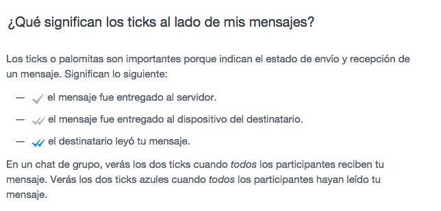 complementa al ya existente, con un check y un doble check gris. Así explica whatsapp en su web, cómo funciona este nuevo método.
